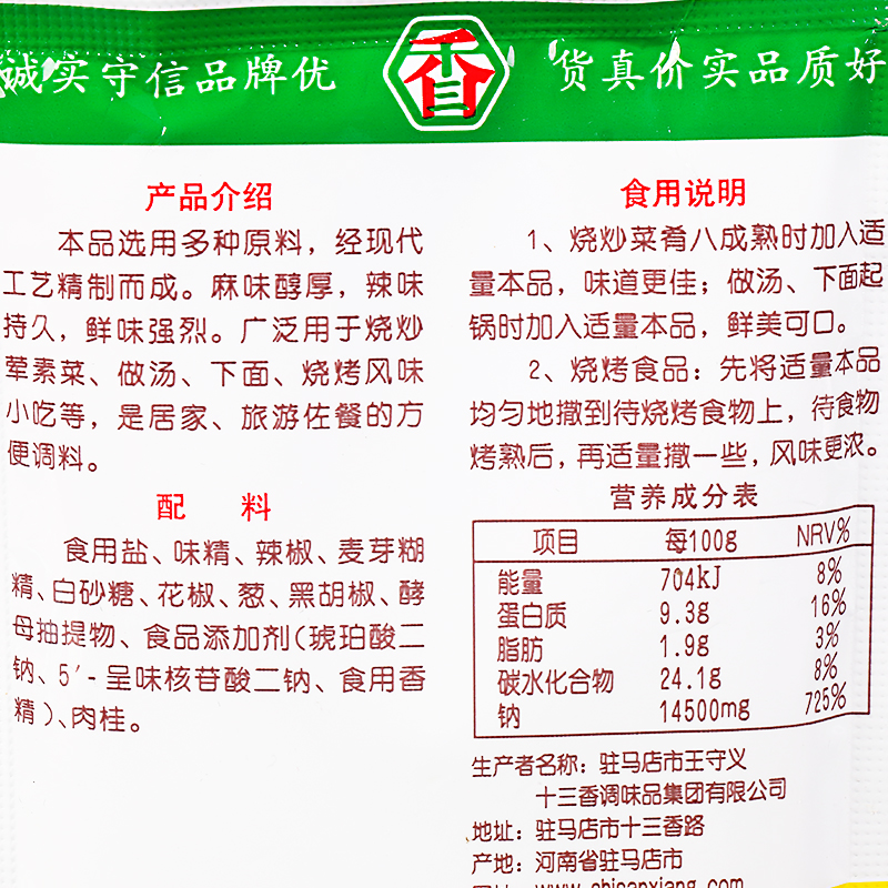 Edible salt monosodium glutamate pepper maltodextrin white sugar pepper onion black pepper yeast extract food additives (disodium succinate 5-flavored disodium nucleotide edible flavor) cinnamon, etc., subject to the actual information of the product packaging.