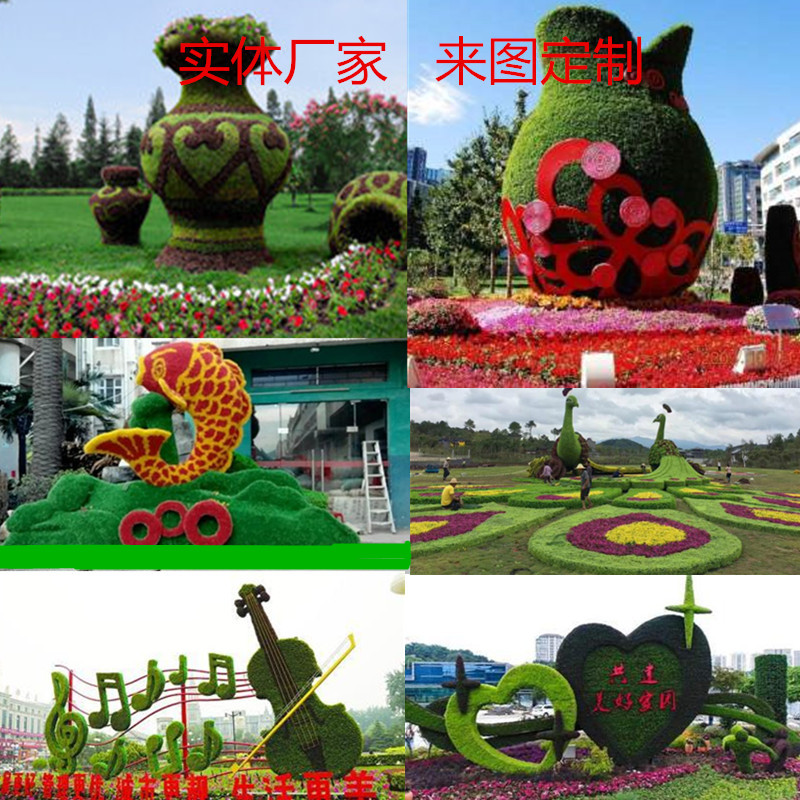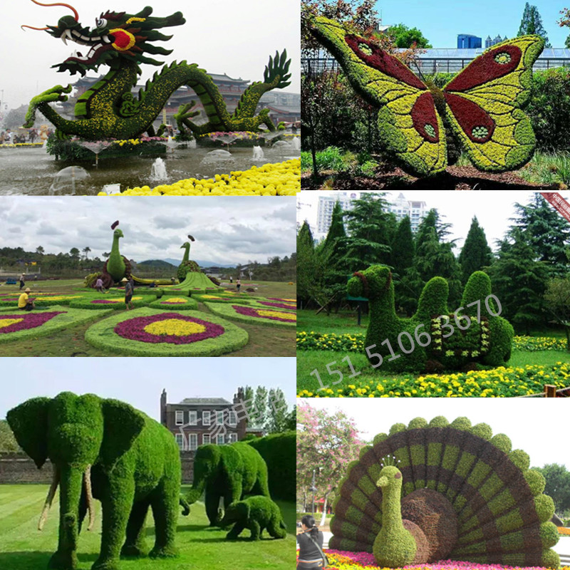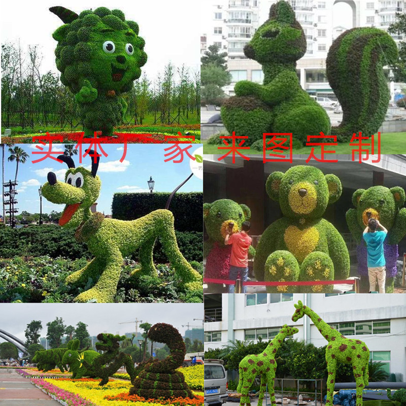 Simulation green sculpture large outdoor five-color grass shape green plants animal design cartoon character sculpture urban landscape