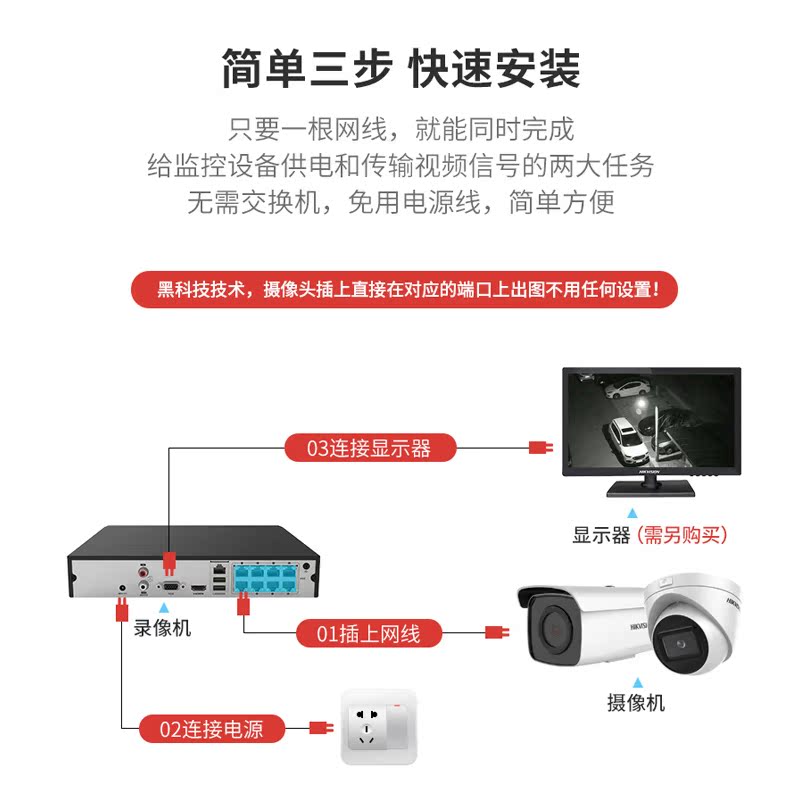Hikvision monitor ultra-high-definition equipment into a set of 4-way 8 million poe network camera commercial system