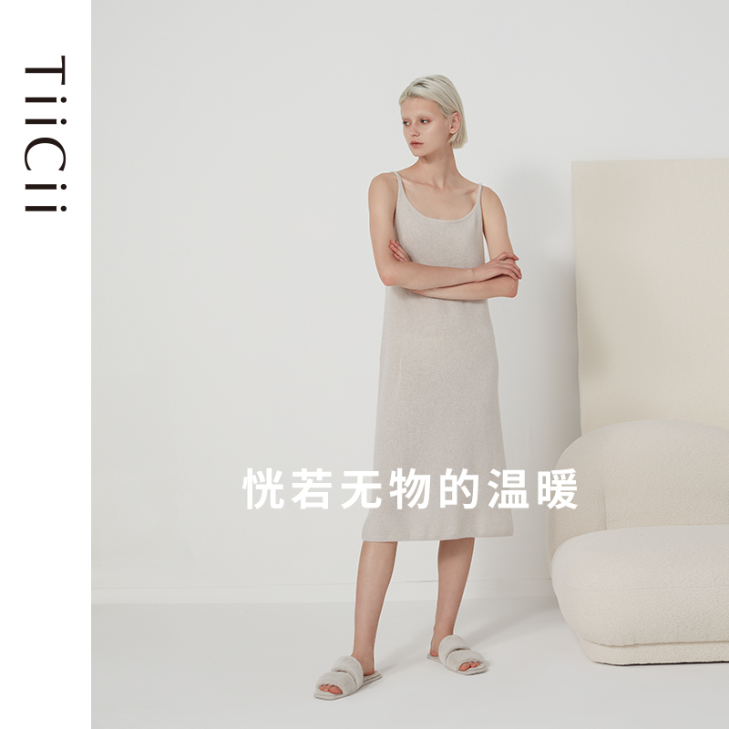 TiiCii Pure Cashmere A-type Dress Lady Fall Winter Seamless Knitting Process Zero Indeful Sleeping Dress Home Clothes