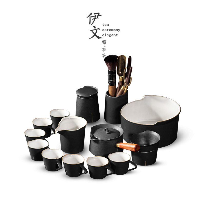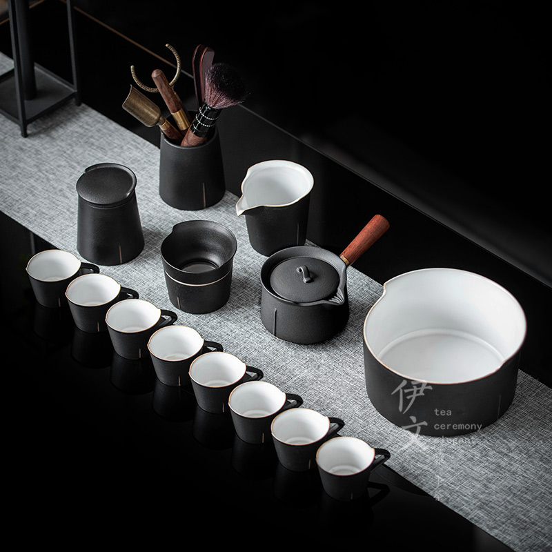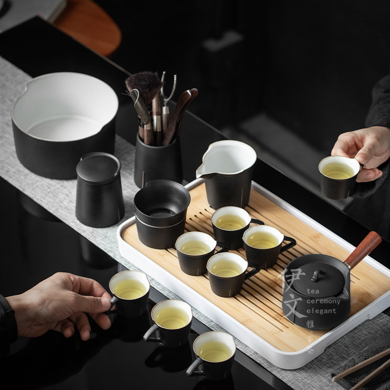 Yiwen ceramic light luxury tea set Ceramic side handle teapot tea kung fu set Household simple living room set gift box