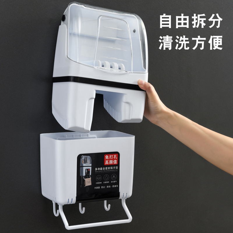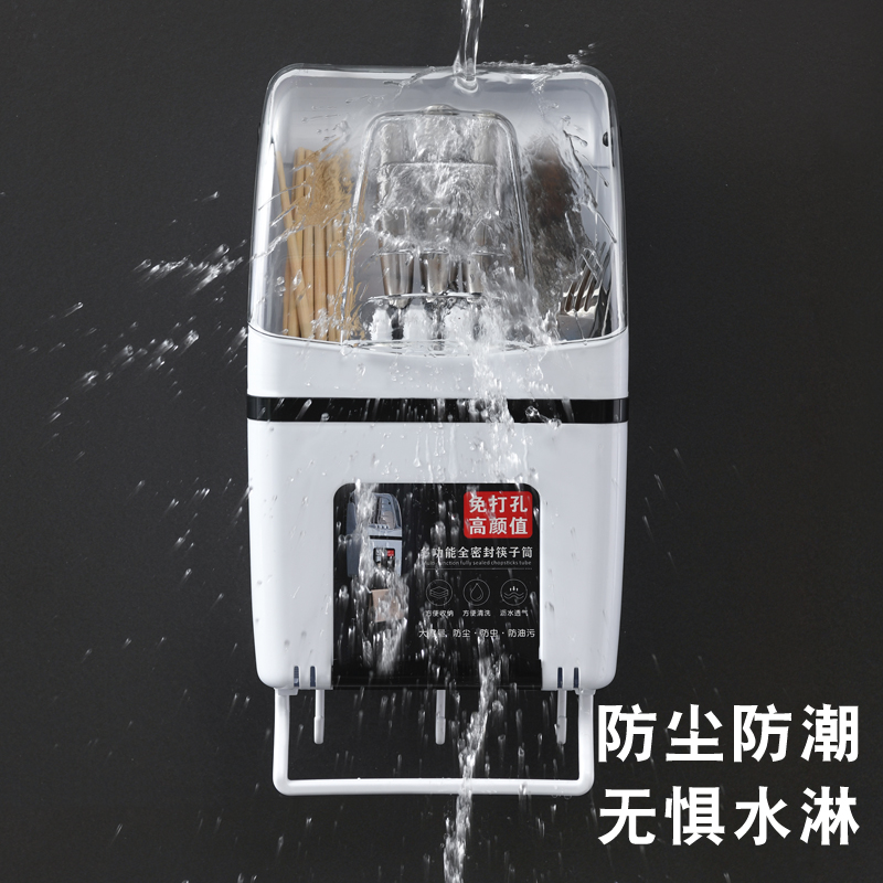 Dust-proof chopsticks basket knife holder wall-mounted drain chopsticks household kitchen spoon chopsticks integrated storage box