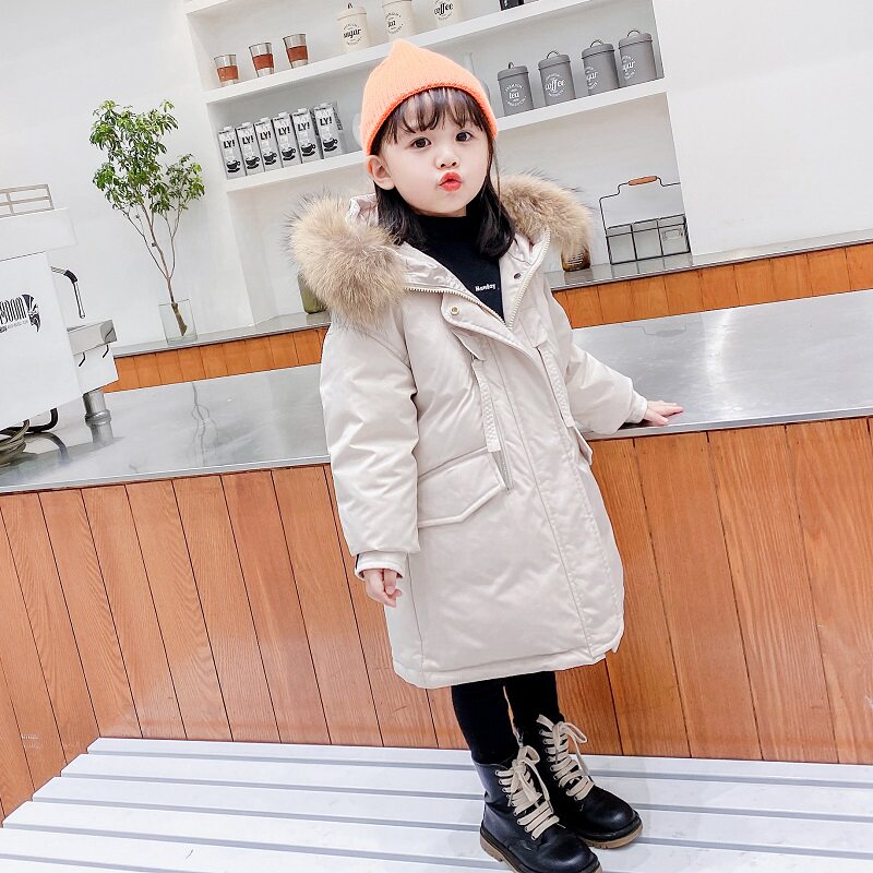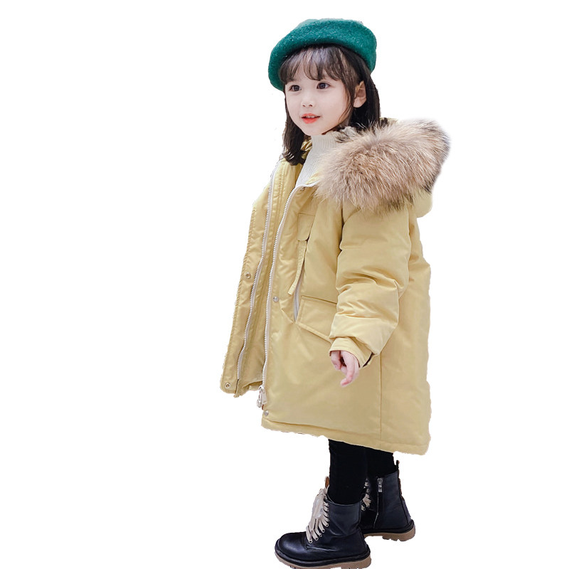 Anti-season halal barn girl sent to overcome female baby mid-length version of large fur collar down jacket for children's winter clothing for girls in the middle of the year