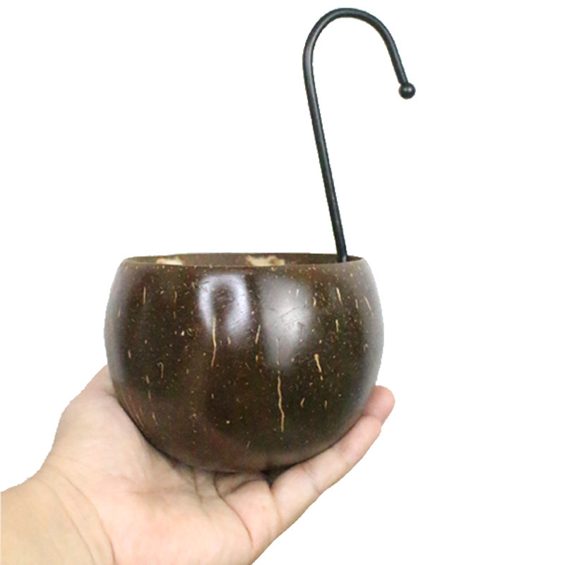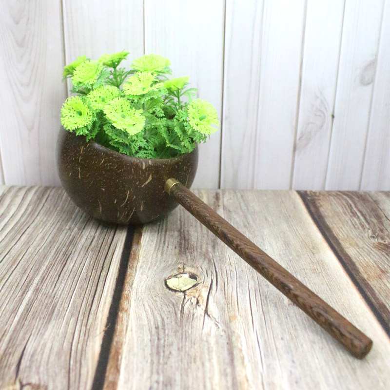Wooden long-handled tea spoon coconut shell wine raisin water spoon divides tea spoon watering flowers water scoop wine spoon device natural retro wine maker
