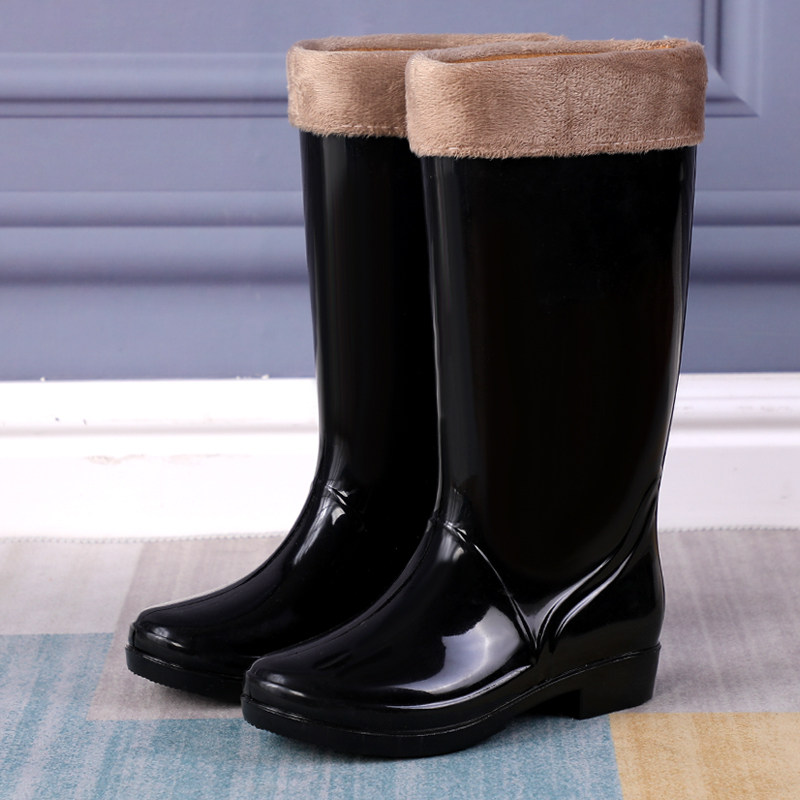 Water Shoes Female Non-slip Waterproof Rain Boots Long Cylinder Fashion Lady Bucket Boots High Cylinder Adult Rain Shoes Plus Suede Thickened Rubber Shoes