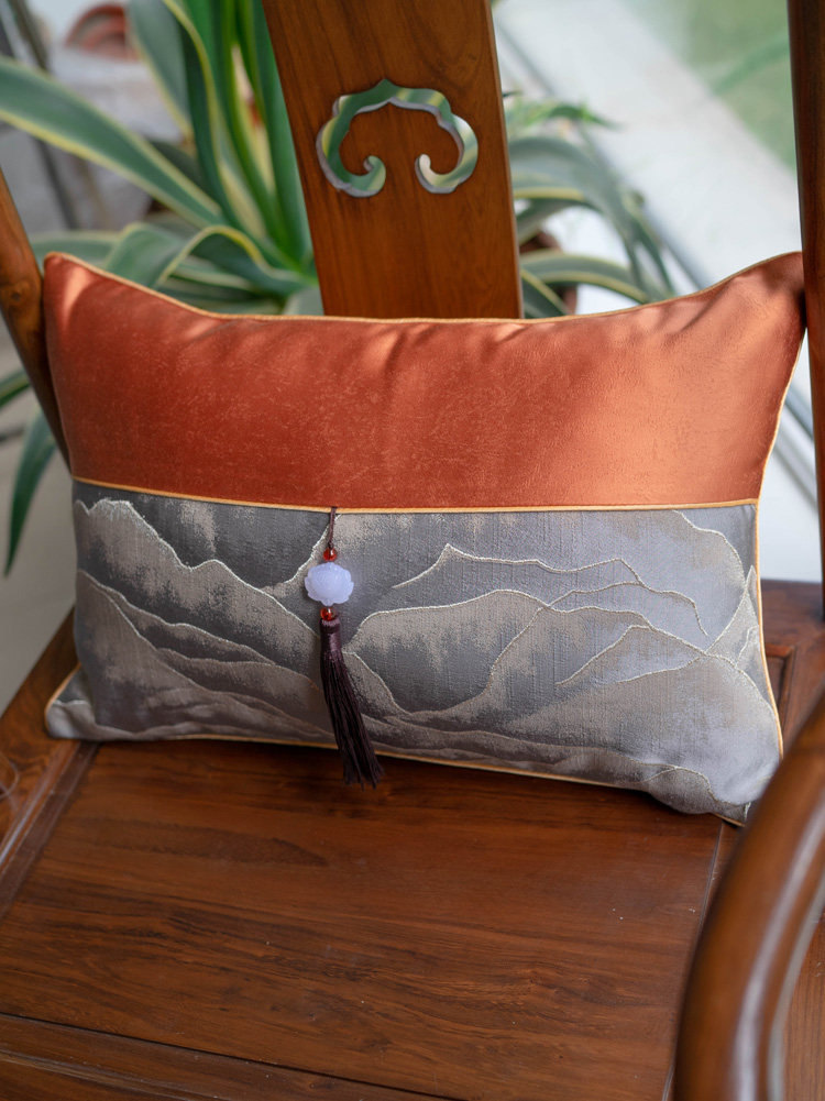 View Mountain cushions New Chinese Orange Circle Chair Waist Pillow Classical China Wind chair Chair Red Wood Chair Backrest Solid Wood Custom