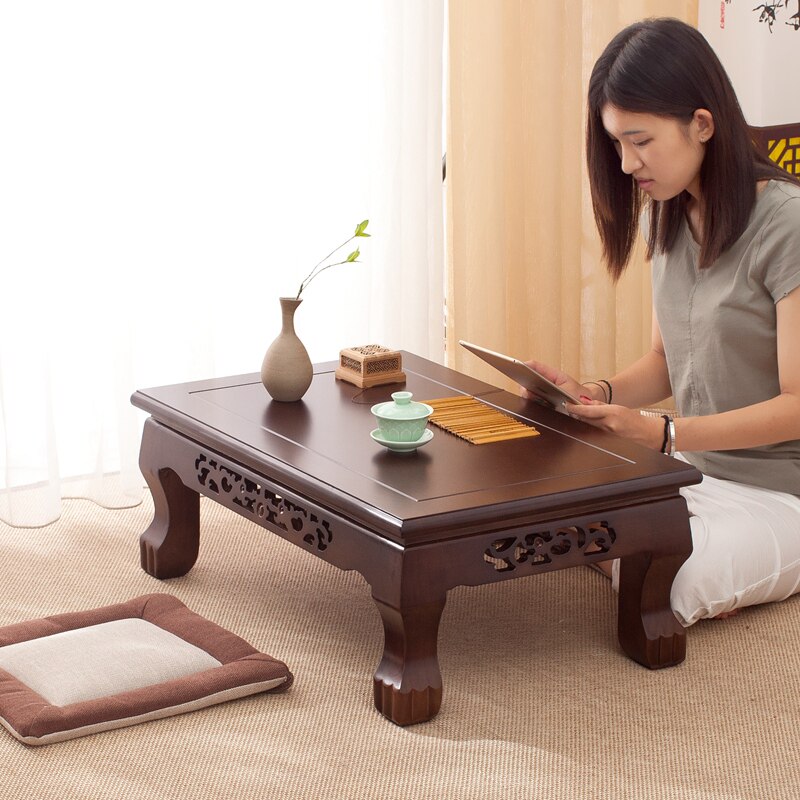 Solid wood tatami table rice tea table New Chinese floating window small table terrace Japanese style minimalist tea dwarf table kang a few Zen tables