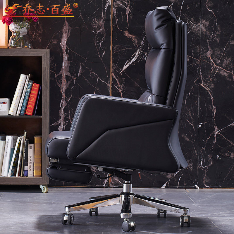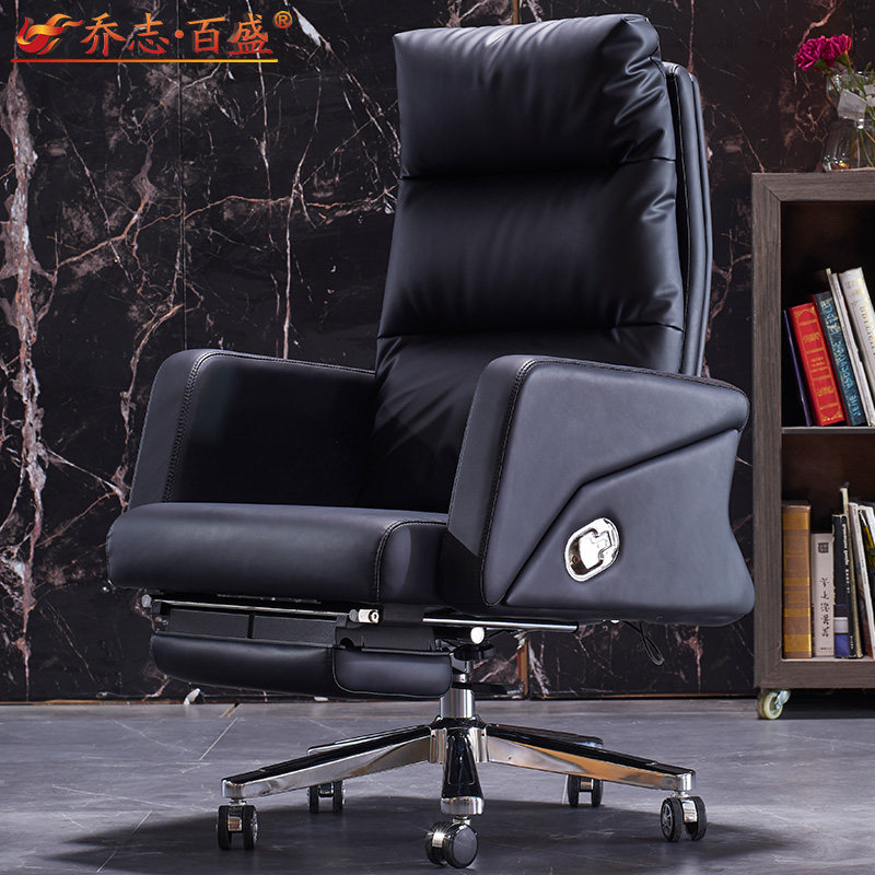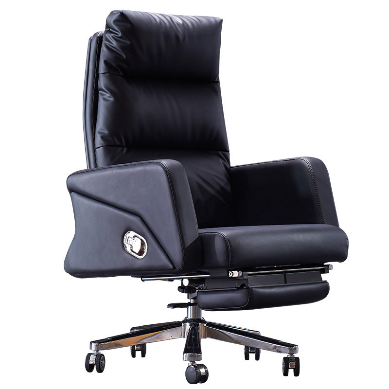 Reclining boss Chair Genuine Leather Brief Comfort Home Computer Chair Footrest Office Chair Bull Leather Large Class Chair