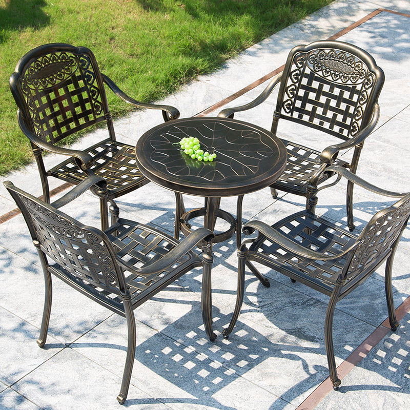 Outdoor Cast Aluminum Table And Chairs Three Five Pieces Outdoor Open-air Balcony Garden Patio Waterproof Iron Art Casual Table And Chairs Combination