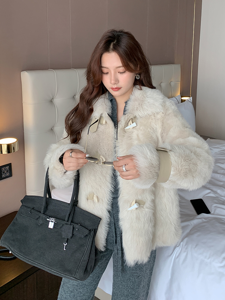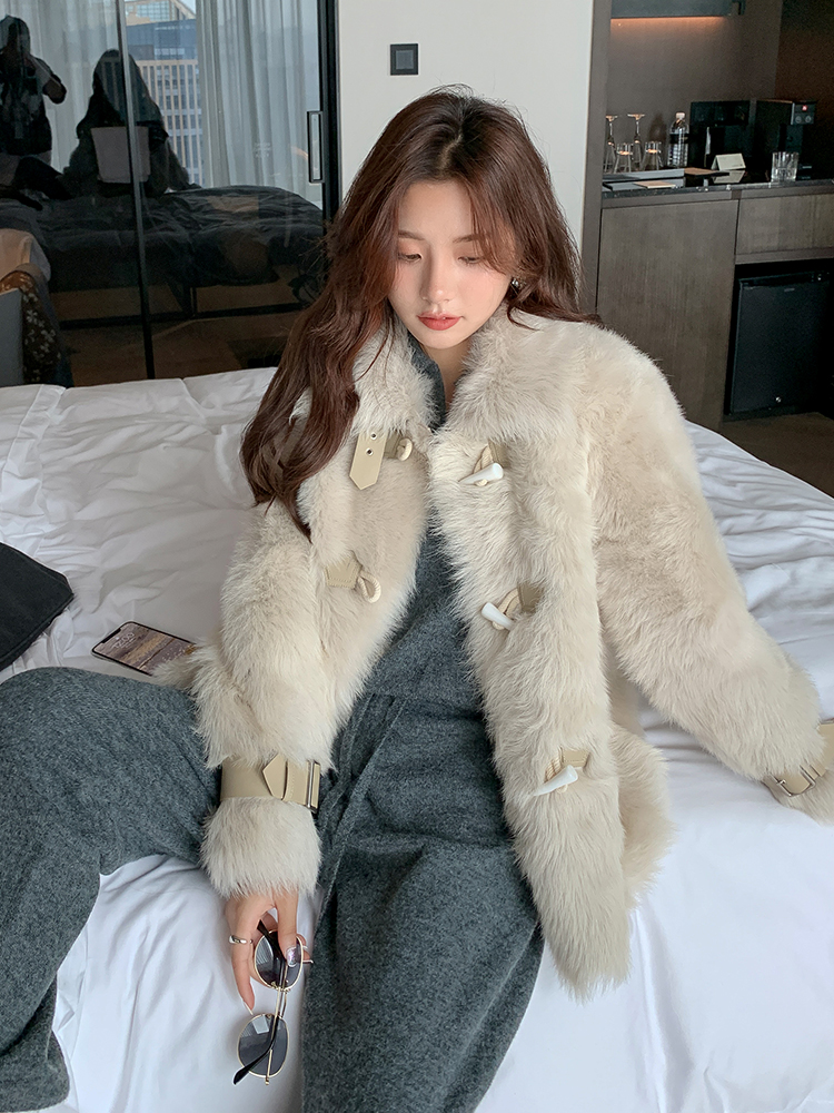 Horn buckle Toca 2020 new Tuscany fur one women's jacket short young lamb fur coat