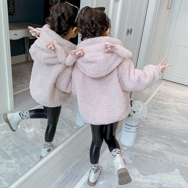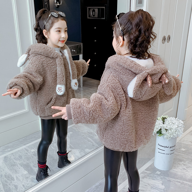 Girl Autumn Winter Plus Suede Jacket 2021 New Girl Winter Clips Cotton Children Foreign Pie Thickened Lamb Fluff Sweater