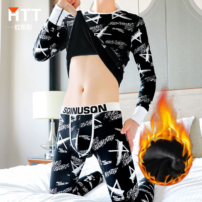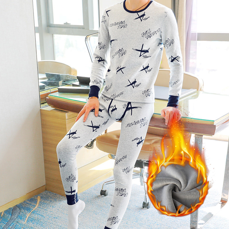 Men's Warm Underwear Plus Suede Thickened Youth Autumn Winter Students Hit Bottom Cotton Sweatshirt Autumn Clothes Sanitary Pants Suit Men