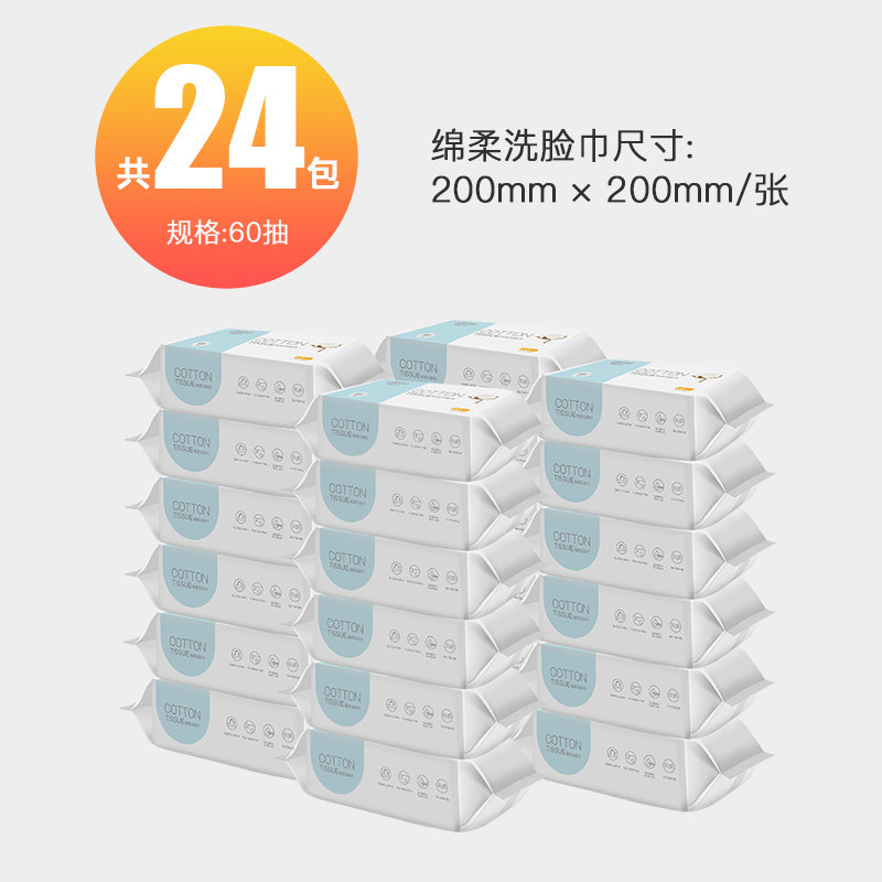 Moldable baby cotton soft towel dry and wet dual-use baby Disposable Wash Face Towels Thickened 60 pumping * 24 Pack