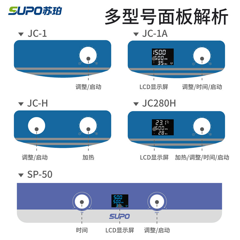 JC-1 standard type JC-1A digital display type JC-H heating type JC-280H digital display constant temperature type SP-10 large-capacity digital display type SP-20 large-capacity digital display