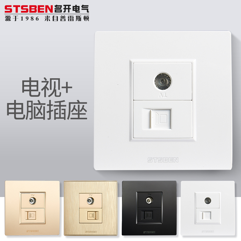 Mingkai Electric 86 type hidden network network port with TV panel Cable TV + Seven types of network cable computer socket