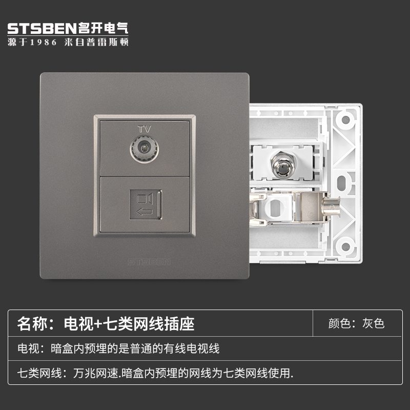 TV + Cat7 cable socket (white) TV + Category 7 cable socket (gold) TV + Category 7 cable socket (gray) TV + Category 7 cable socket (black)