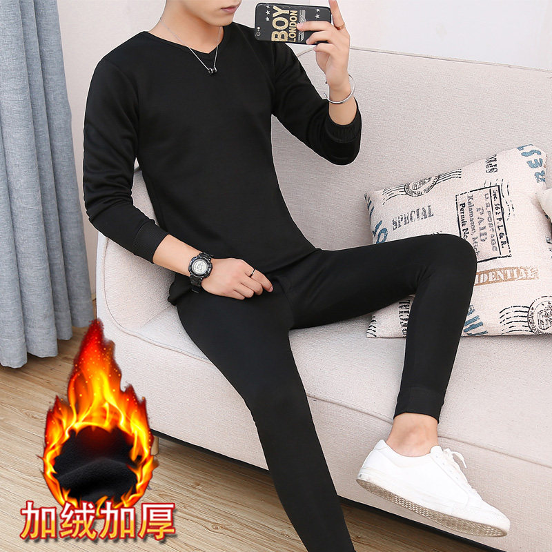 Men's autumn clothes sanitary pants winter suit new gush thickened warm inner clothing pants swarm and round collar youth tight