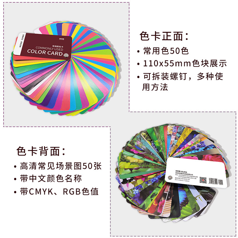 50 common color card sample board card international standard cmyk print paint paint Paint Color card Sample Advertising Design Division Costume Children National Standard Color color matching color card This display book