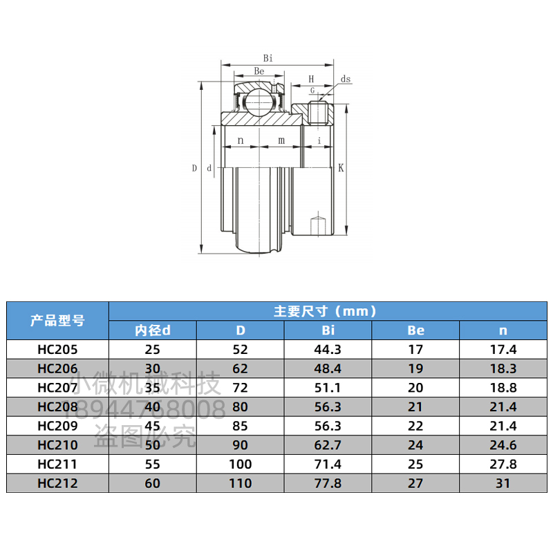 HC205 (inner diameter 25mm)HC206 (inner diameter 30mm)HC207 (inner diameter 35mm)HC208 (inner diameter 40mm)HC209 (inner diameter)