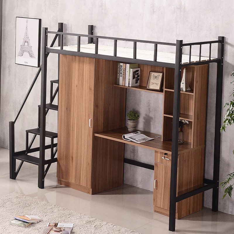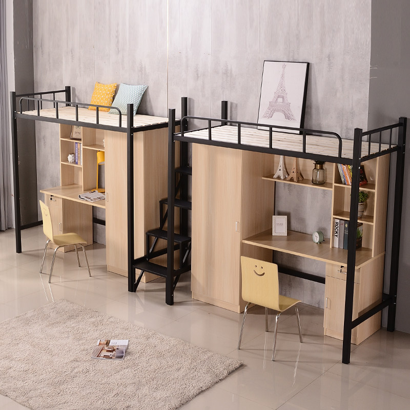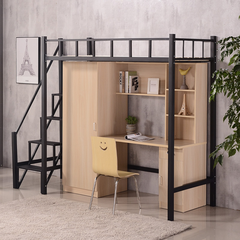 College student dormitory apartment Bed bed Under the table Wrought iron with wardrobe Desk one-piece staff adult simple elevated bed