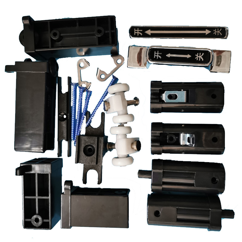 Old folding door hardware accessories pulley up and down rail hardware glass sliding door plastic parts push pull small folding parts
