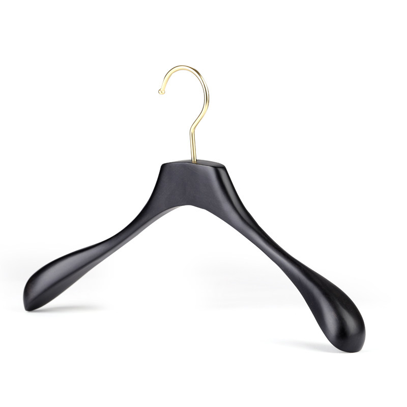 Black hanger hanging clothes birch solid wood designer clothing store dedicated high-end light luxury wood wide-shoulder coat hanging