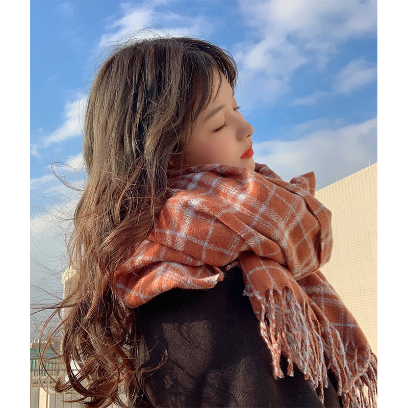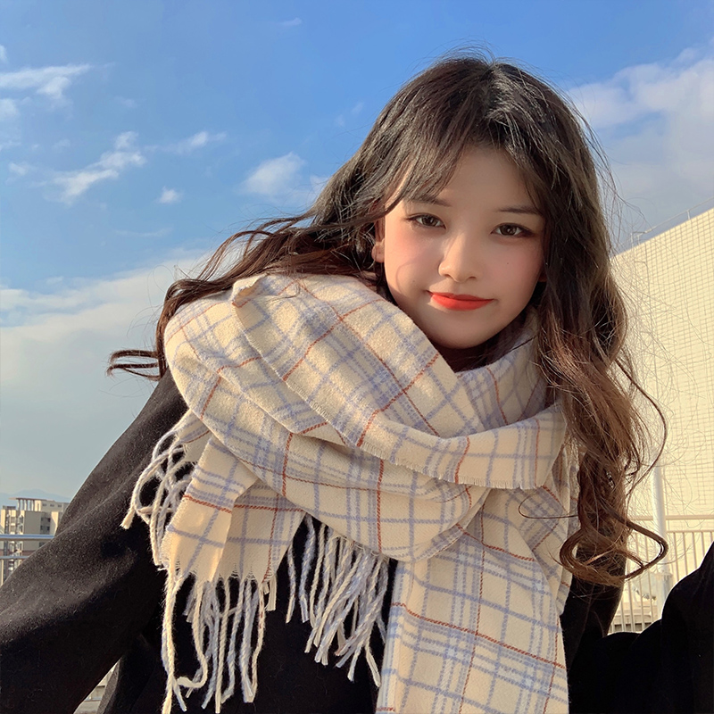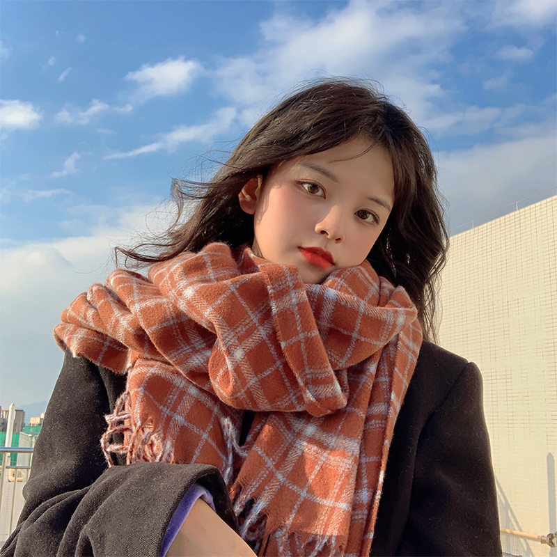 Scarf women's autumn and winter Korean version of wild double-sided plaid thick warm collar imitation cashmere shawl dual-use outside the tide