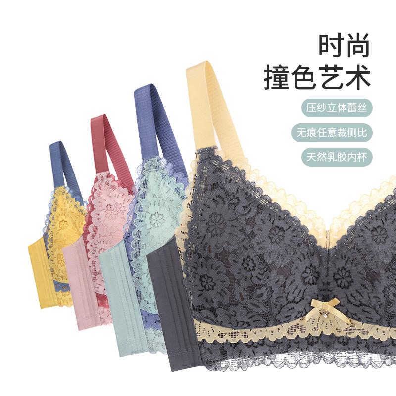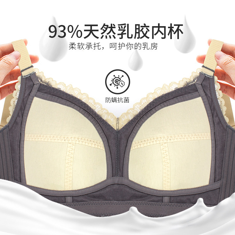 Purple Fiber Thai Latex Underwear Female Summer Thin large breasted with small bra No steel ring to gather anti-sagging bra