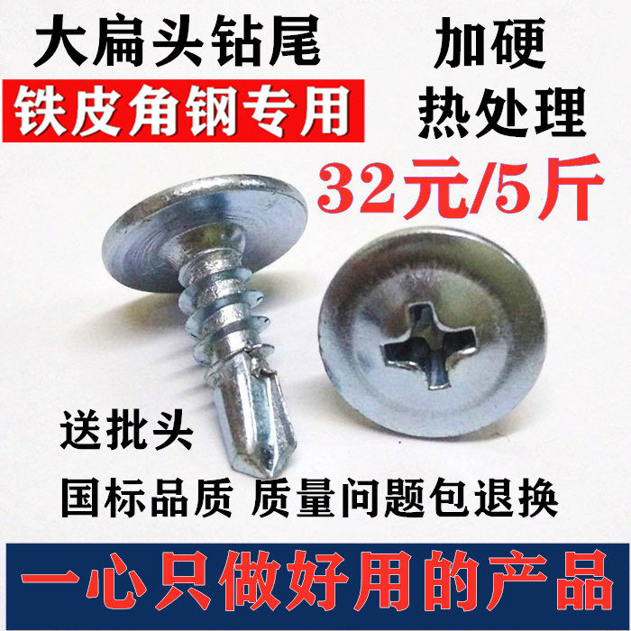 National Standard Cross Large Flat Head Flat Head Drilling Tail Nail Self-Tapping Self-Drilling Self-Drilling Dovetail Silk Colored Steel Tile Iron Sheet Special Bolt 4 2