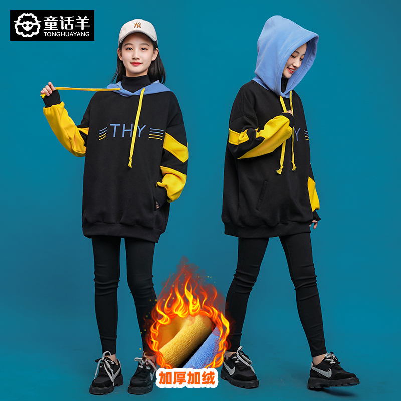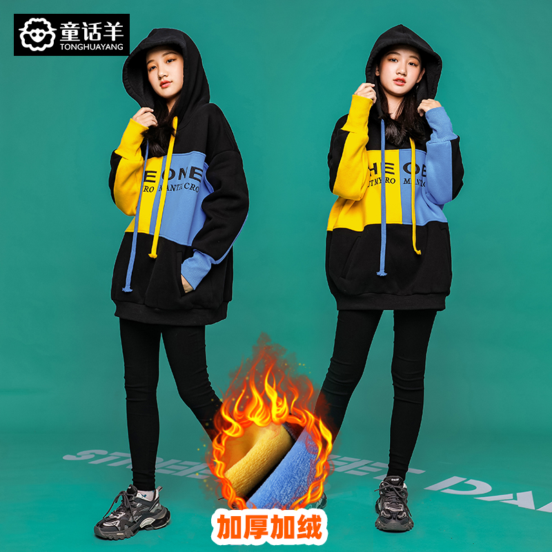 Girls fleece hooded sweatshirt jacket 2022 spring and autumn models in the big children's students 12 Western style 13 clothes tide 15 years old