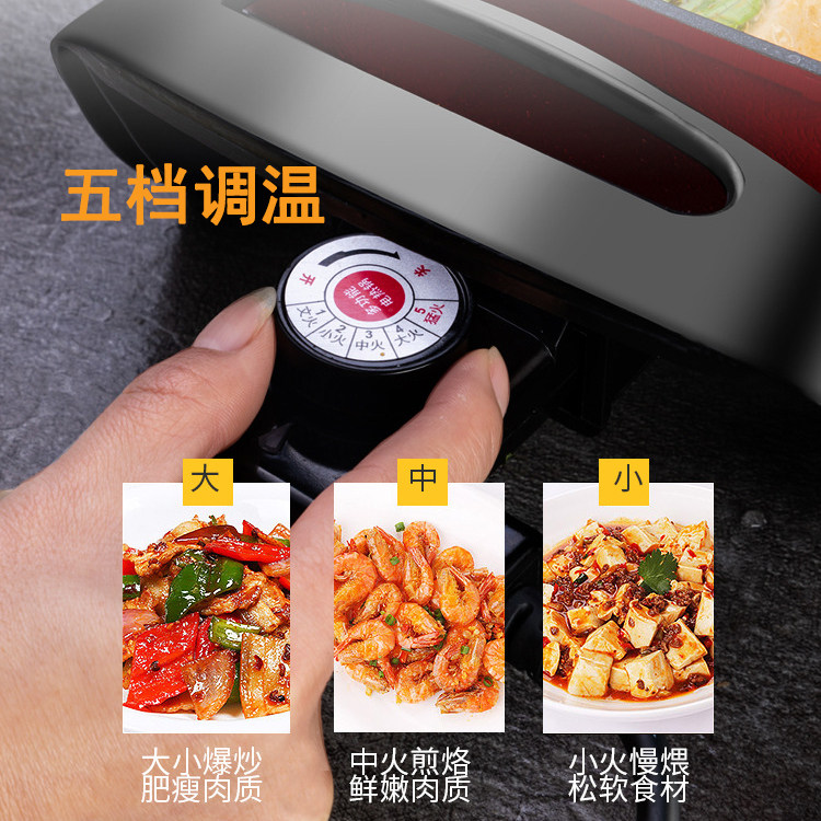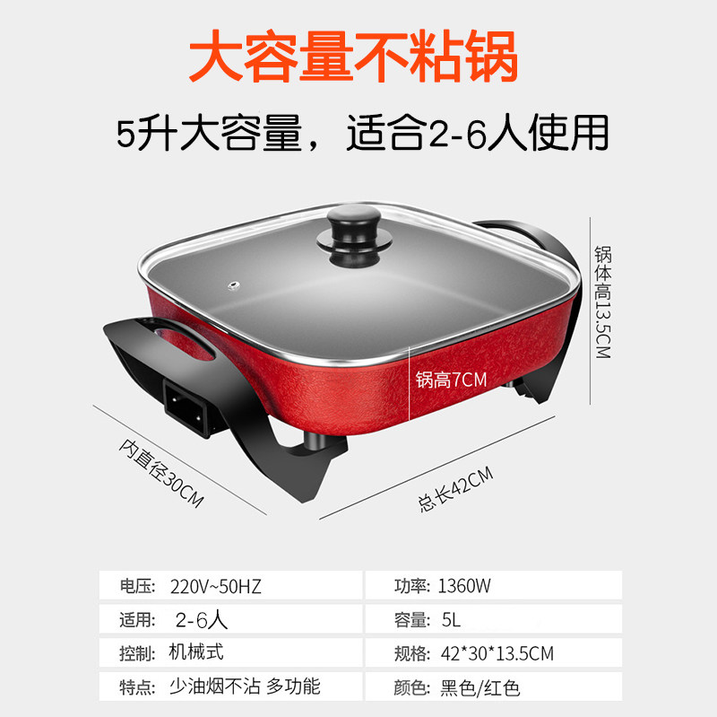 Flat-bottomed electric frying pan multi-functional household pancake barbecue barbecue plug-in electric hot pot non-stick pan integrated electromagnetic can stir-fry