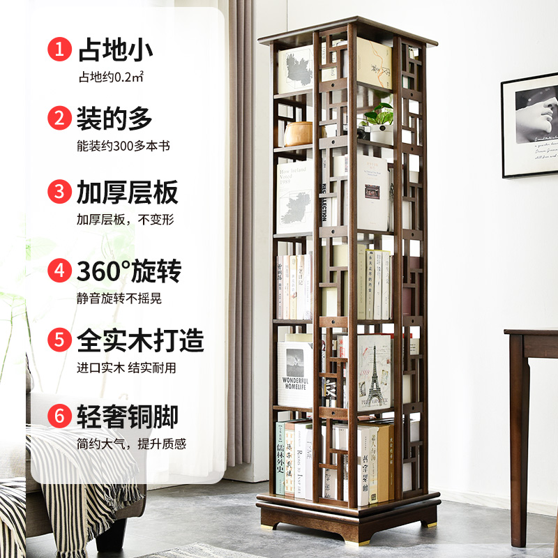 New Chinese rotating bookshelves Three floors white widening 6 floors white New Chinese rotating bookshelves Five layers of walnuts New Chinese Swivel Bookshelves Five Floors Original Wood Color New Chinese Swivel Bookshelves Triple Walnuts Color New