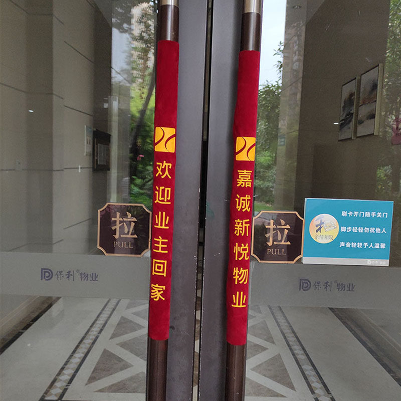 Custom unit door handle jacket thickened double-sided suede handle protective sheath Embroidery Anti-Print Character Factory Direct