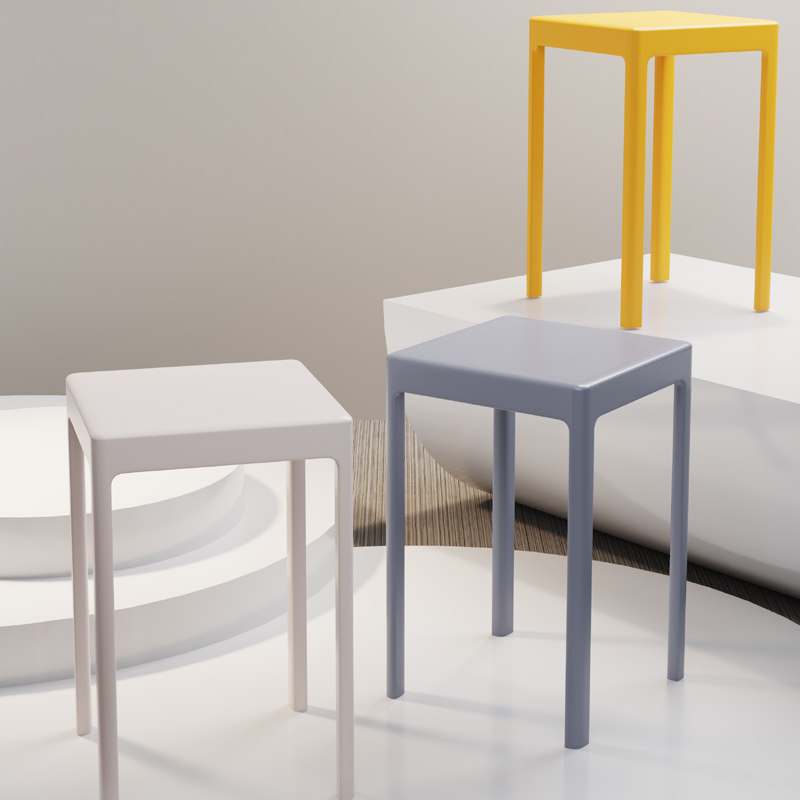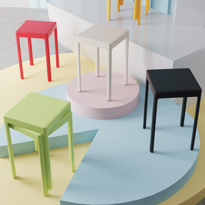 White, yellow, red, gray, green, black, dark blue, light blue, pink, dark blue (widened and enlarged square stool), light blue (widened and enlarged square stool), green (widened and enlarged square stool), yellow (widened and enlarged square stool), white