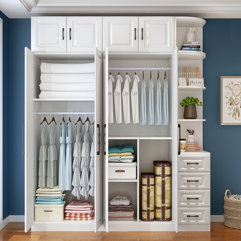 Wardrobe simple modern economy type family bedroom overall combination European-style solid wood six or five doors large wardrobe assembly