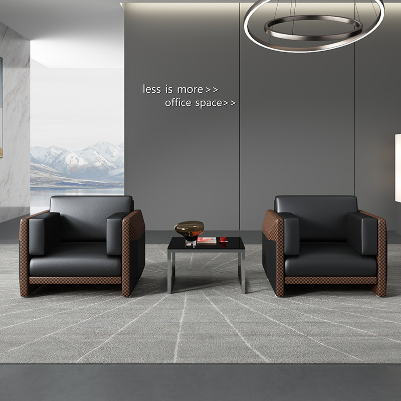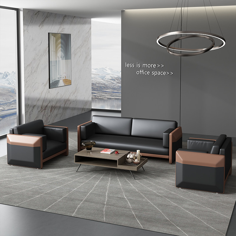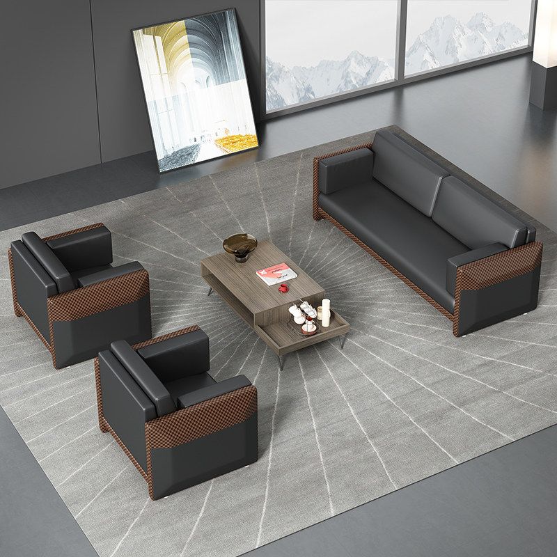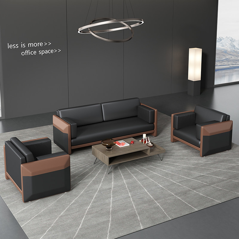 Simple modern fashion business office three people leather leisure negotiation reception room guest sofa tea combination