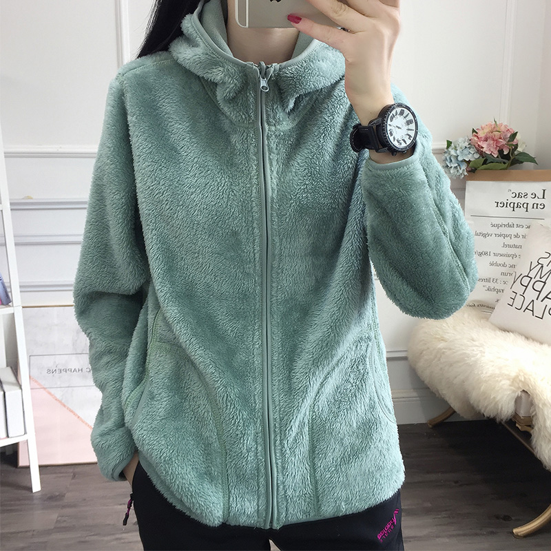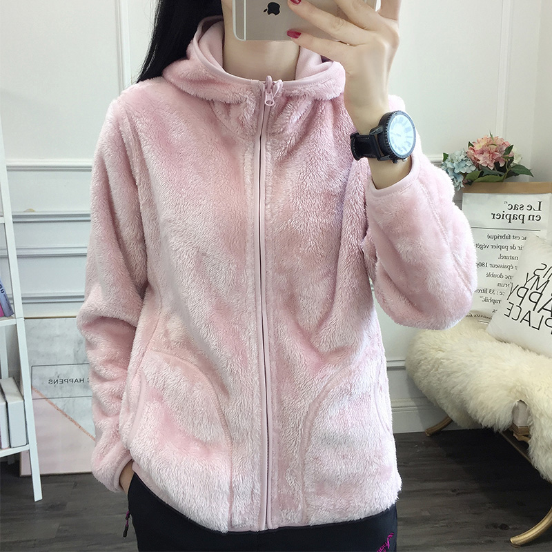 Outdoor fleece jacket double-sided cardigan jacket Men's and women's hooded coral velvet warm breathable elastic stormtrooper jacket liner
