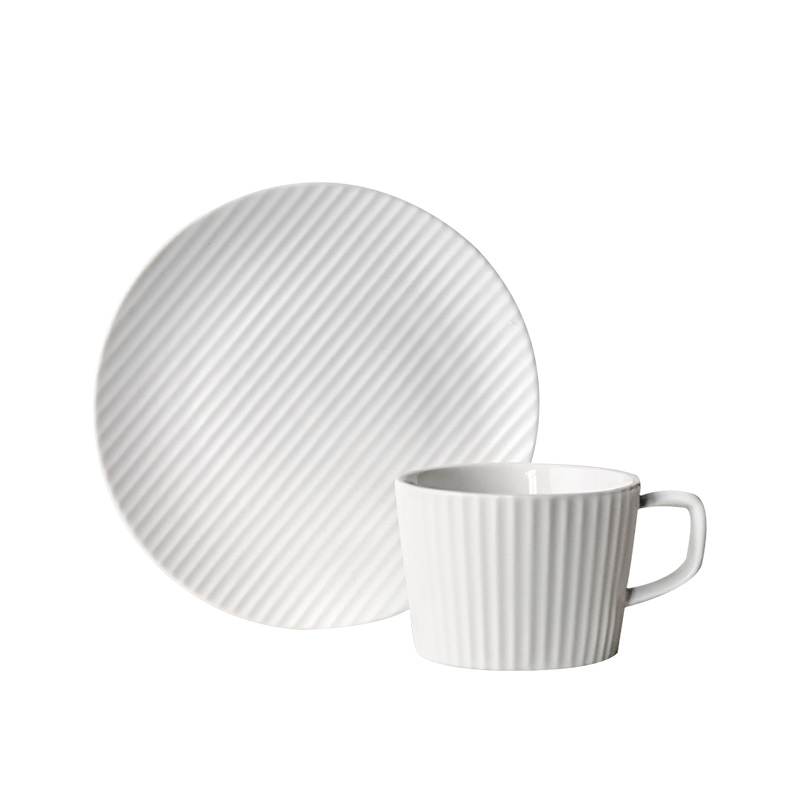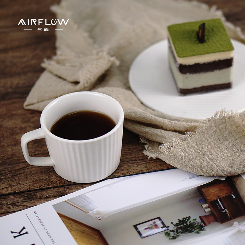 Air - flow coffee cup ceramic cup Japanese white mark plate vertical striped ceramic tea device