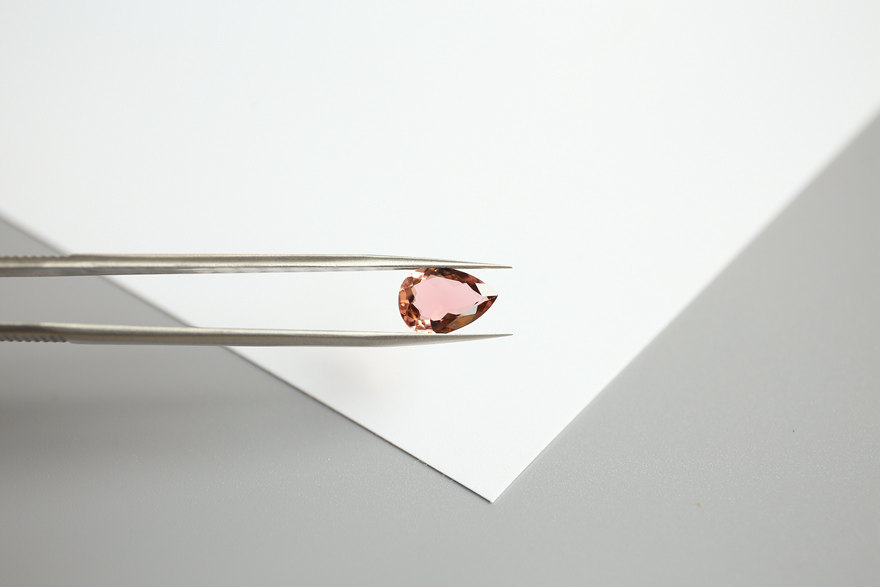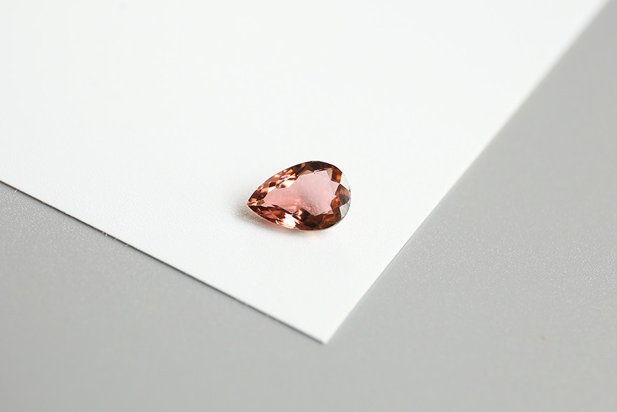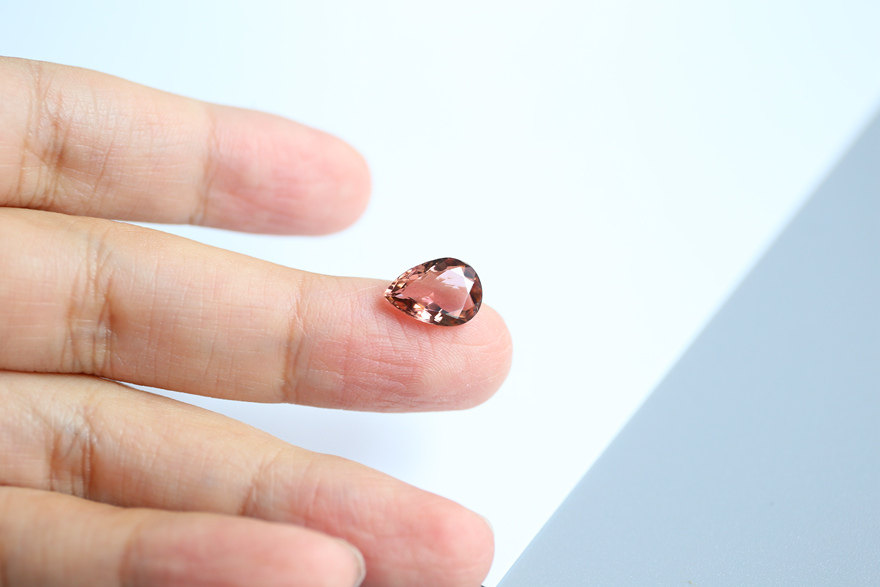 3.36 ct natural light orange rubellite bare stone pear shaped ring table top large clean glass body