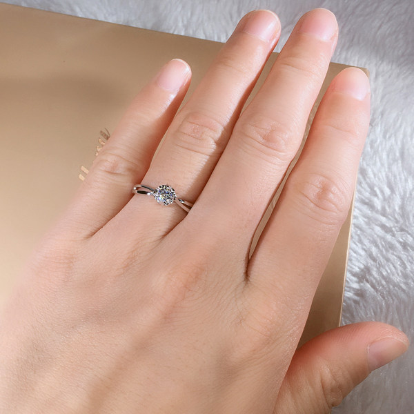 Wheeler Jewelry 18K Gold Hollowed-out Twist Arm Natural Diamond Female Ring Love Snowflake Courting Wedding Engagement Female Ring