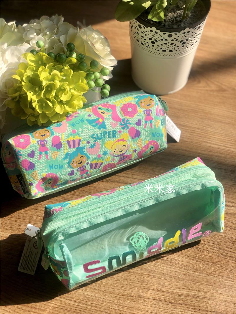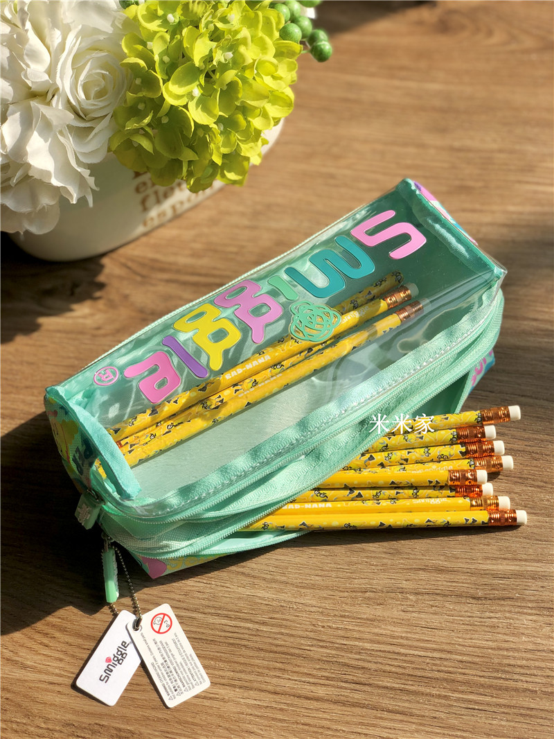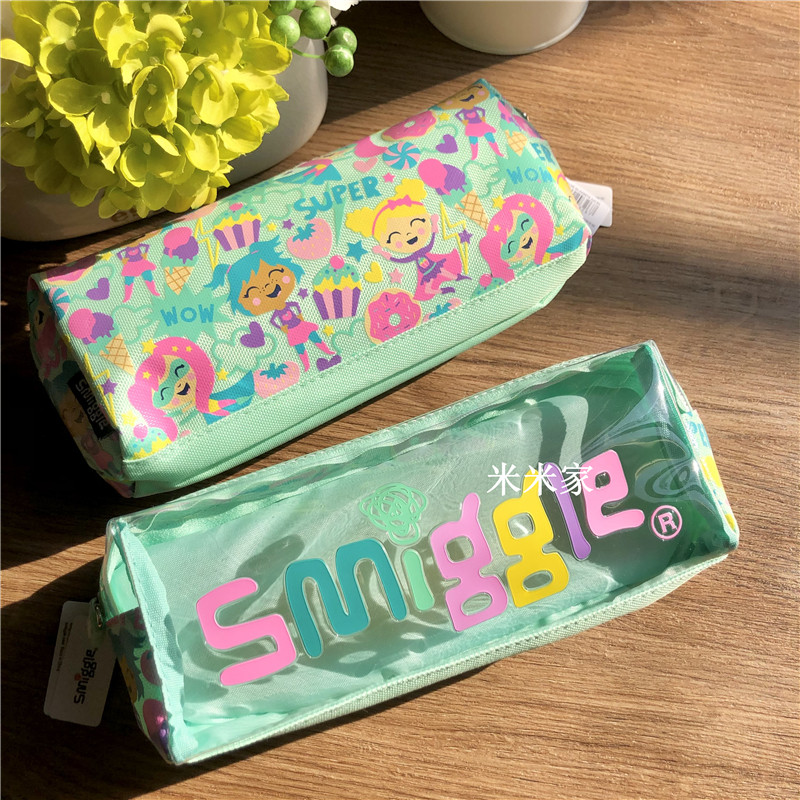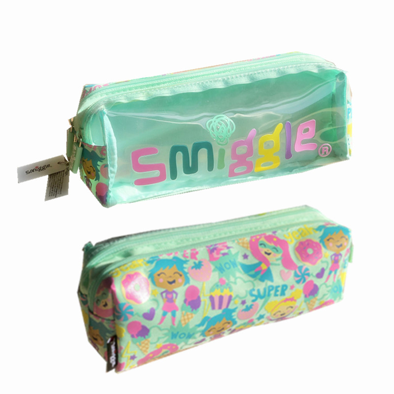 smiggle letter green girl large capacity double layer pull chain student pencil soft pen bag children stationery gift