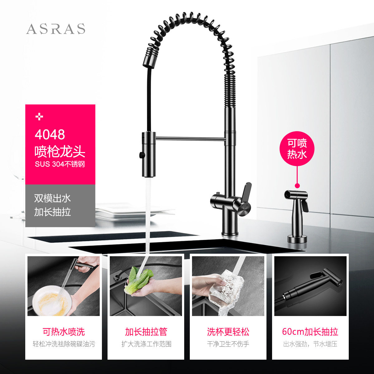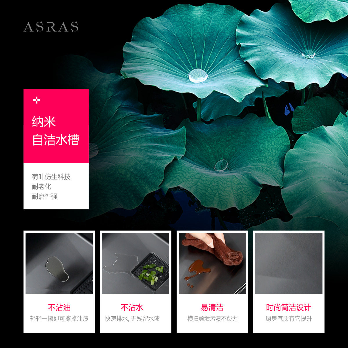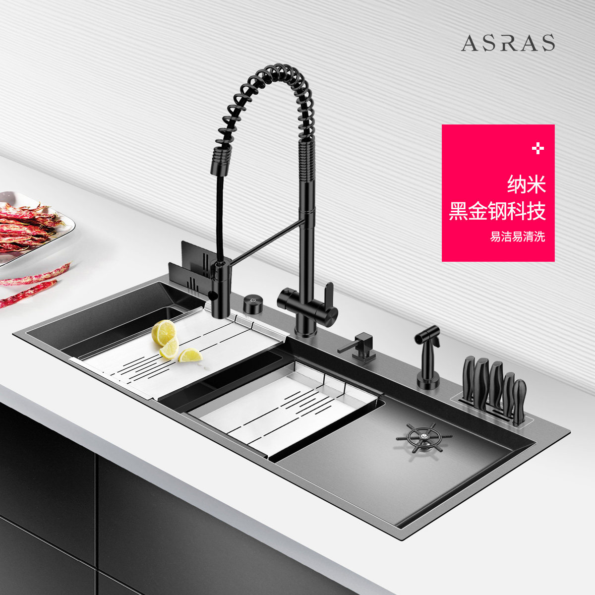 Assas Black Nano handmade sink Household dishwashing double sink kitchen dish washing basin thickened stainless steel vegetable washing pool