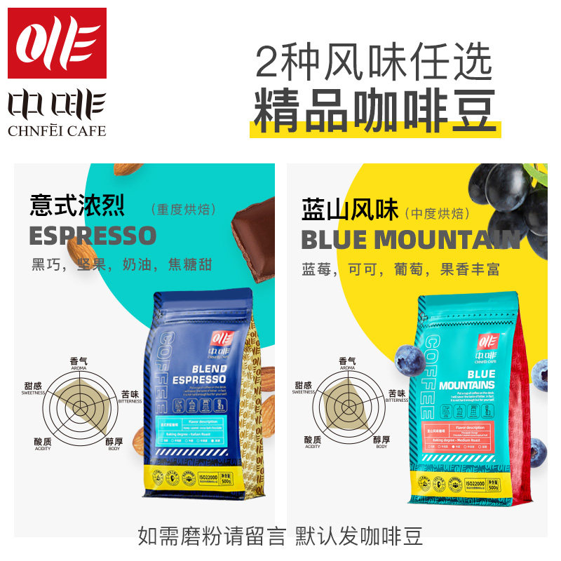 (2 bags x 500g) Roasted coffee beans hand grinding coffee powder Italian piece of blue mountain coffee beans