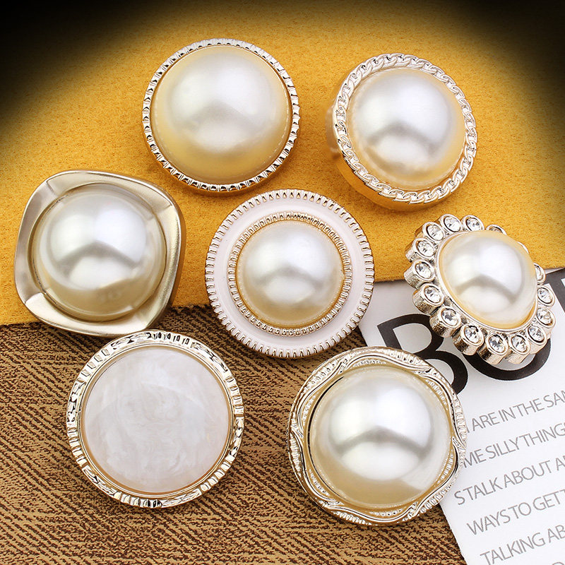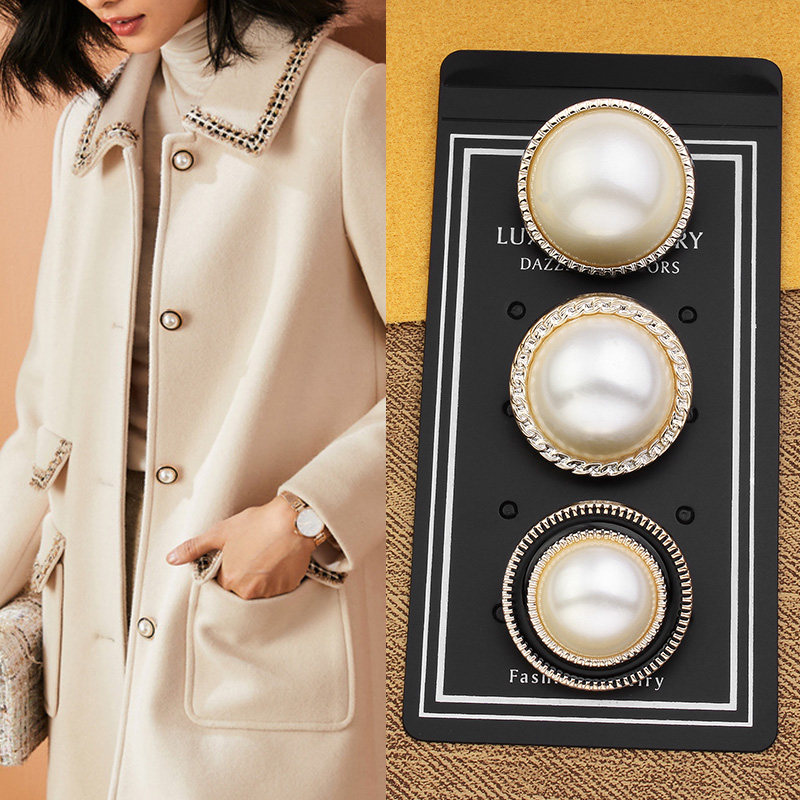 Pearl button hundred and small fragrant hair coat dress pajamas high-end round golden large button
