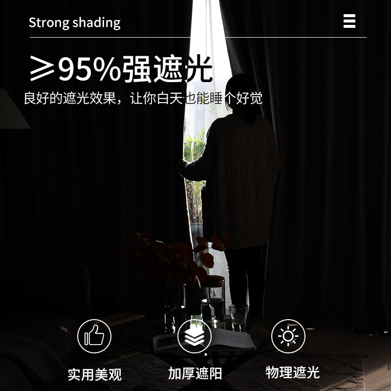 Hook-type free perforation full blackout sun bay window sunscreen slide rail 2021 new bedroom living room curtain fabric finished product