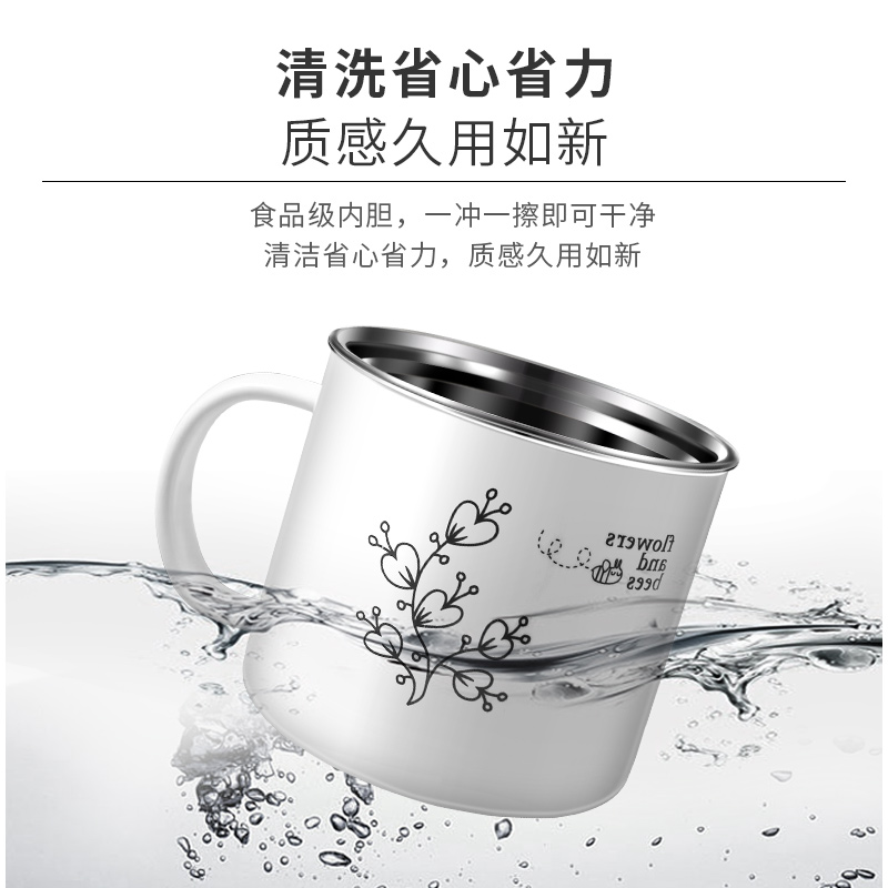 304 stainless steel water glass children's cup with handle anti-fall cup kindergarten drink water tea cylinder home cup mouth cylinder