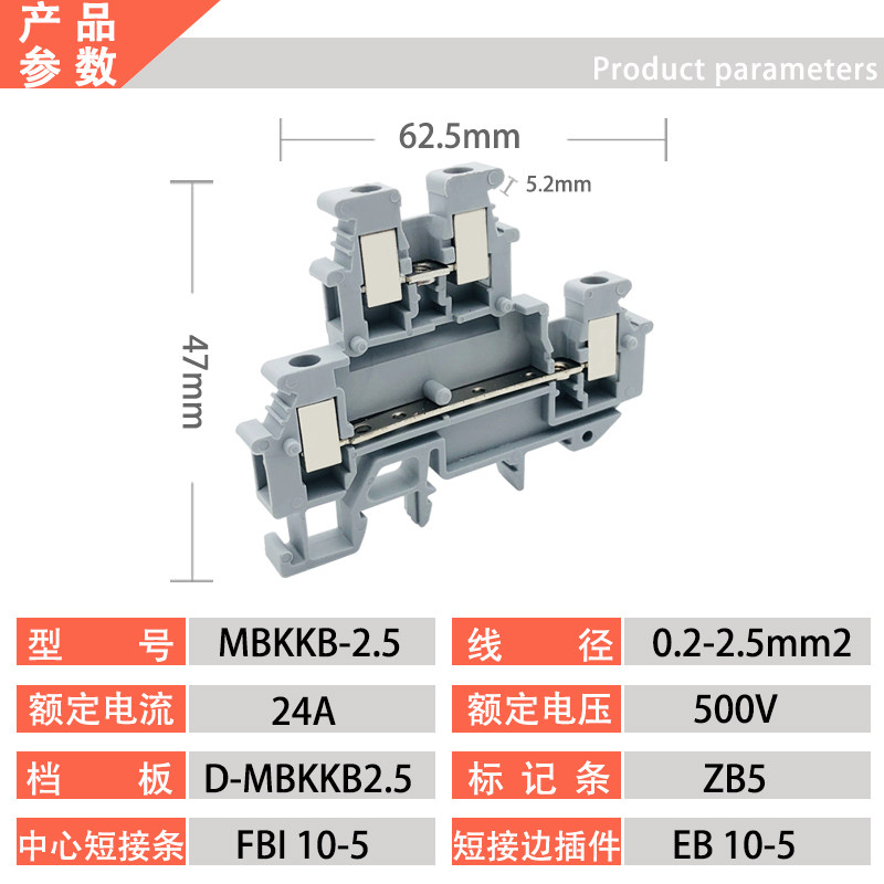 MBKKB2 5 Twin Layer Terminal Terminal Pure Copper UK Rail Rail 2 out 0 5-2 5 square terminal row
