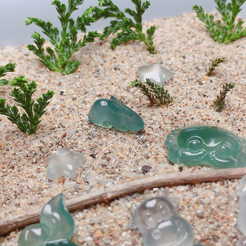 Yu Rim Xing Jewelry Emerald Straight Podcast Jade Buddha Male Ice Seed Guanyin High Ice Top Pearl Egg Noodles 18k Inlay Ring Surface