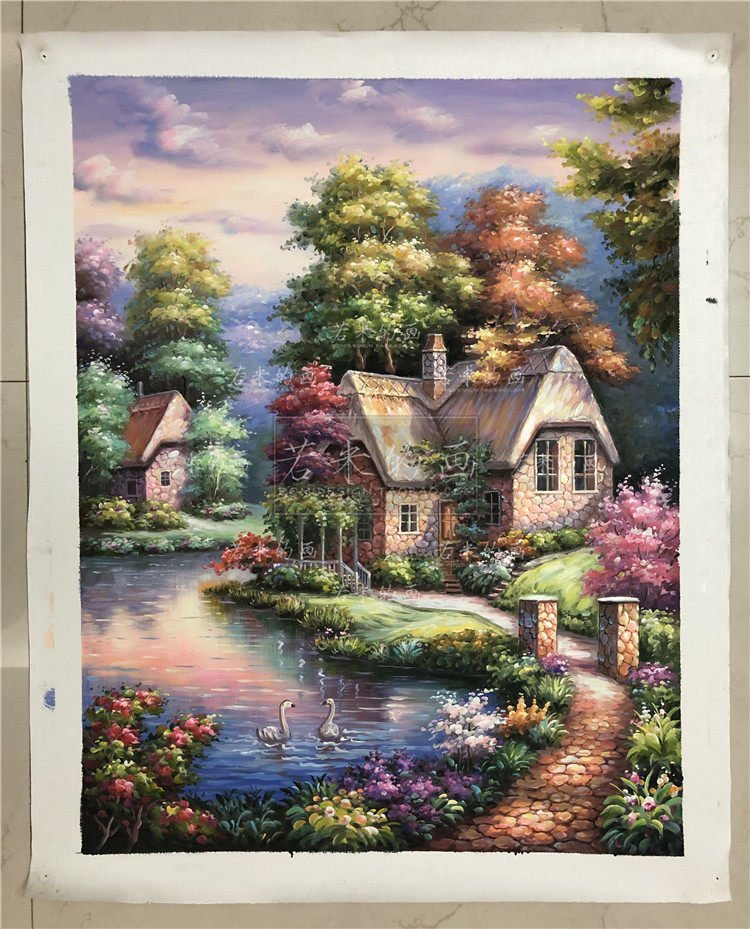 95x67 vertical corridor, bedroom painting, porch hanging painting, hand-painted oil painting, purple Thomas landscape, American, French and European style