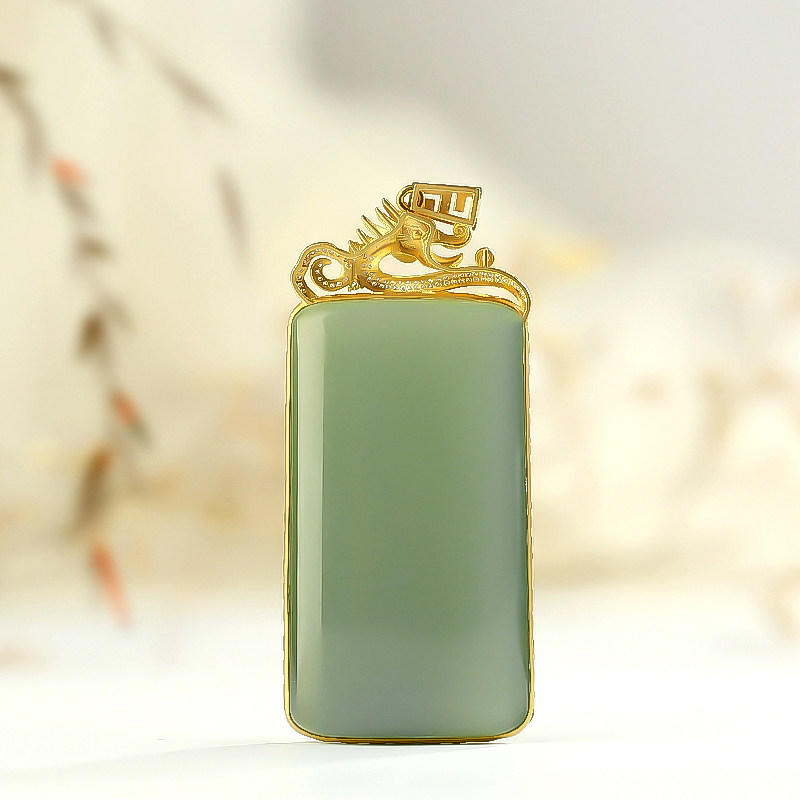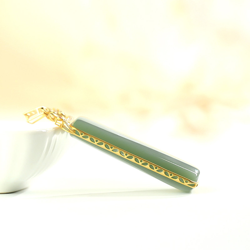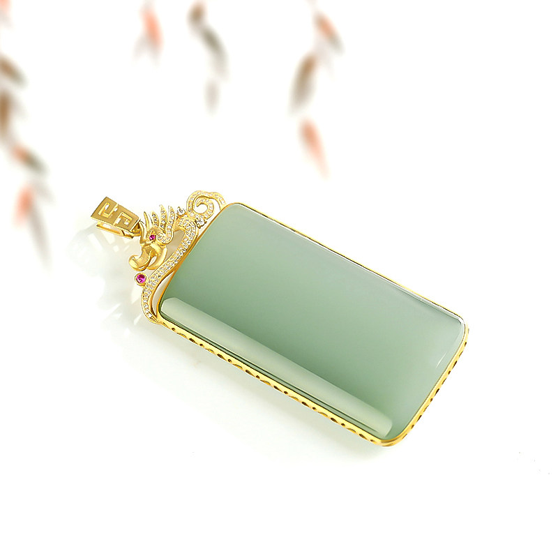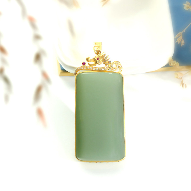 Mustache brother jewelry and Tian jade pendant Russian jasper powder green ice material 18K gold inlaid nothing card no structure